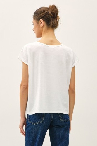 Such a cute tee with its oversized cut, split v-neck and the softest white cotton club material.