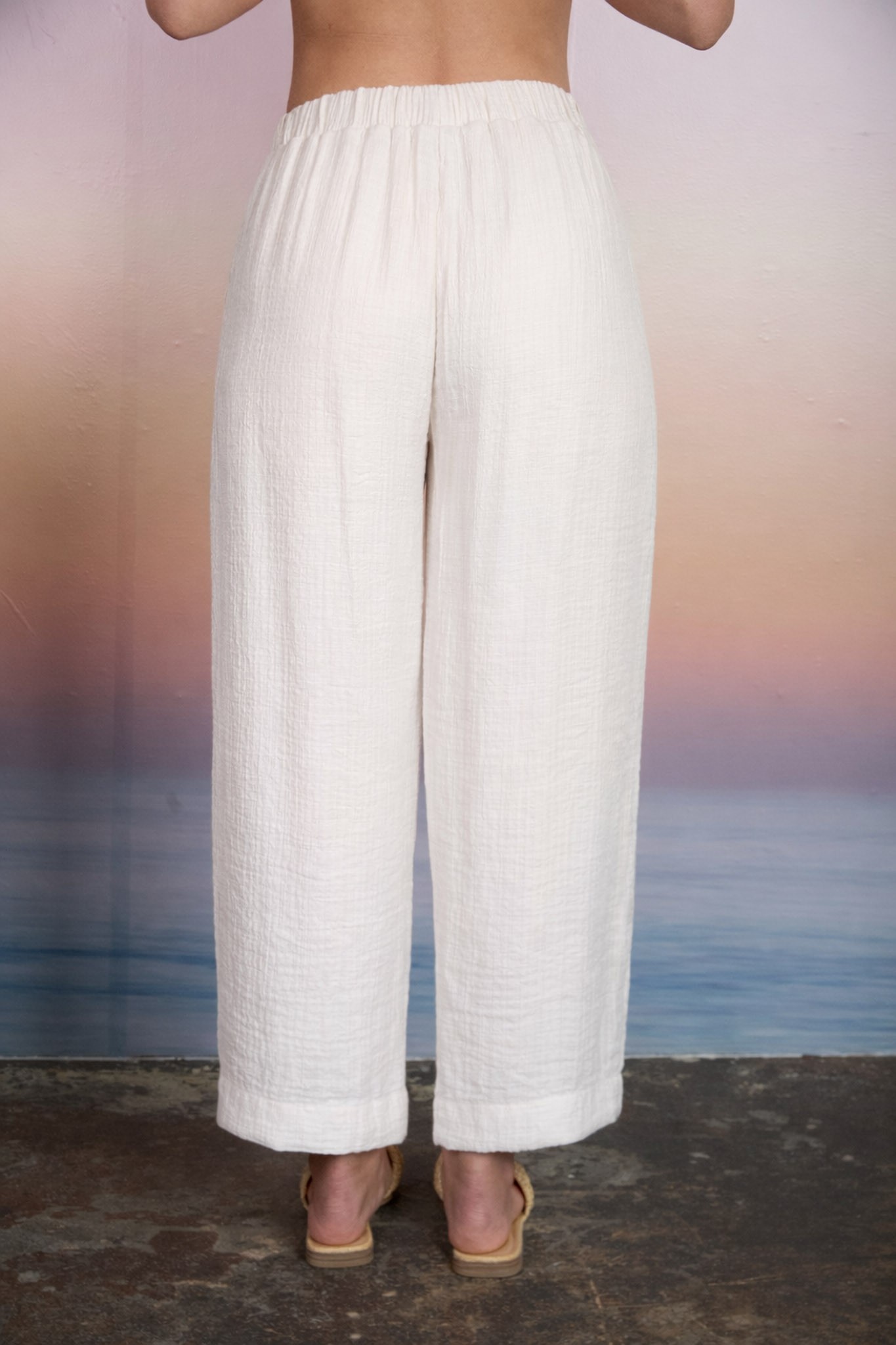 A summery staple, these easy going elastic waist pants are cut from a lightweight textured rayon blend.